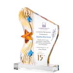 琉璃獎座結合琉璃與水晶材質,展現流動色彩與晶透質感的完美融合。