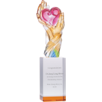 琉璃獎座結合琉璃與水晶材質,展現流動色彩與晶透質感的完美融合。